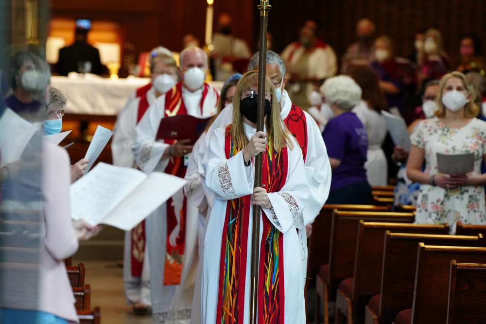 In much the same way as it began, the 2022 Synod Gathering ended with a spirit-filled worship service. We gathered at Lenoir-Rhyne University’s Grace Chapel on Saturday afternoon to celebrate the Vigil of Pentecost with music, liturgy, prayers, and the sacrament of Holy Communion. All rostered ministers were invited to vest and process for the closing worship service of our time together and during the worship service, they were invited to renew their ordination vows.