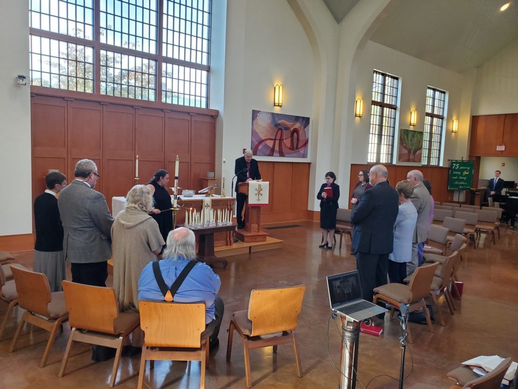 After joining Christ the King again, this time for their stewardship breakfast on Saturday, Bishop Eaton joined NC Synod rostered ministers (deacons and pastors) for a closed All Saints Worship Service at Holy Trinity, Chapel Hill. Rostered ministers aren’t often given the time to worship when they aren’t preaching or presiding. This service is a sacred space for pastors and deacons to participate in ritual and liturgy, remembering the saints who have gone before us. Rostered ministers who had experienced loss in the last year were invited to attend either onsite or on Zoom. The Zoom recording is available to rostered ministers by request. We give thanks to Bishop Eaton for joining us for this meaningful service.