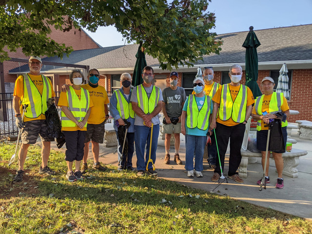 The weekend began early Saturday with cleaning projects, one at the church where fourteen people gathered to polish seventy-two handbells. Meanwhile, ten members disposed of litter along a one-mile stretch of road near the church property. Elsewhere, volunteers took shifts on Saturday at Servant’s Heart Community Boutique to collect donations, sort and price clothing items, and help customers check out. Revenue from the Community Boutique supports the financial assistance programs for residents of Mint Hill, NC.