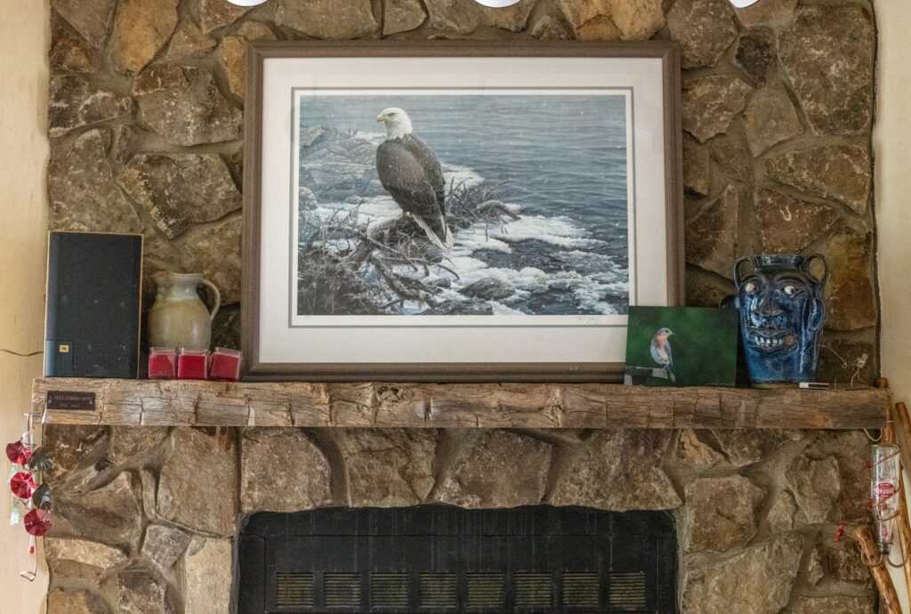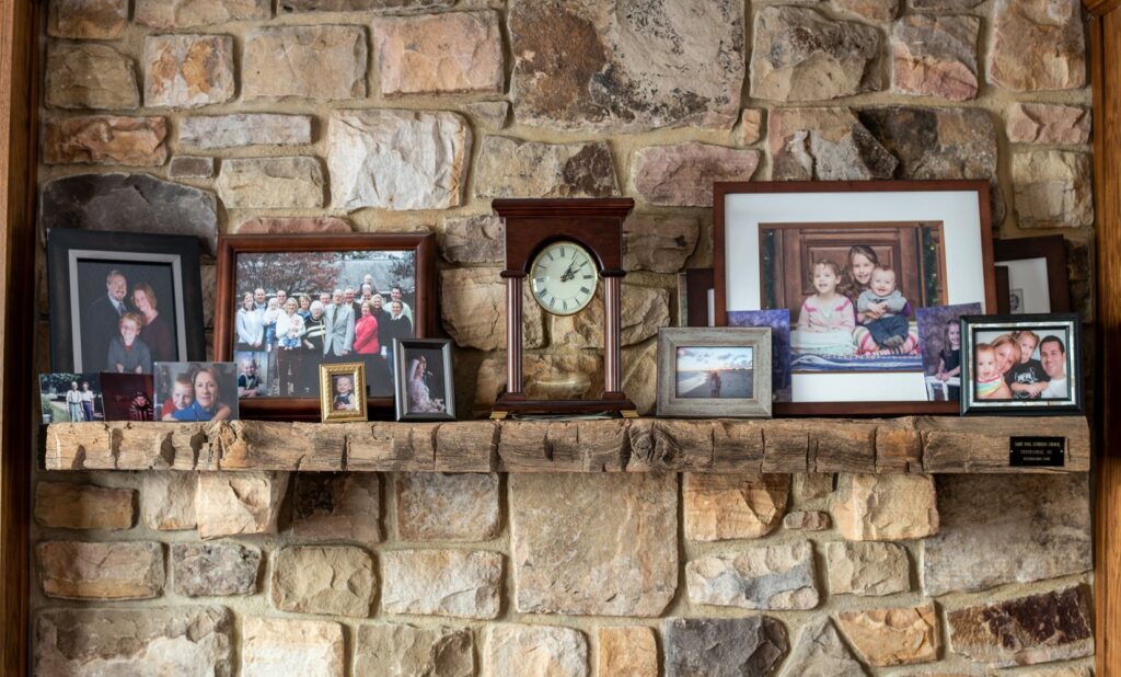 Byron sawed his beam in half lengthwise and gave the pieces to his son, Joel. One half is now a mantlepiece in Joel’s home in Hickory and the other is the mantle in his mountain house near Blowing Rock. He had plaques made stating the origin of the beams that were placed on each mantlepiece.