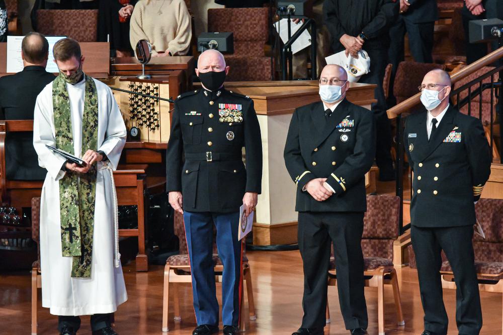Captain Brian J. Stamm, USN, Fleet Chaplain, U.S.  Fleet Forces, commissions Pastor Drew Goodson for ELCA Federal Chaplaincy.