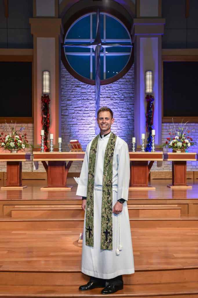 “When the Navy recruiter came to seminary, it was like this alignment of my interest in building Christian community and serving Christ, as well as serving our country,” he says.