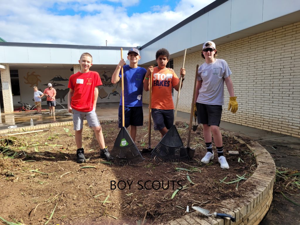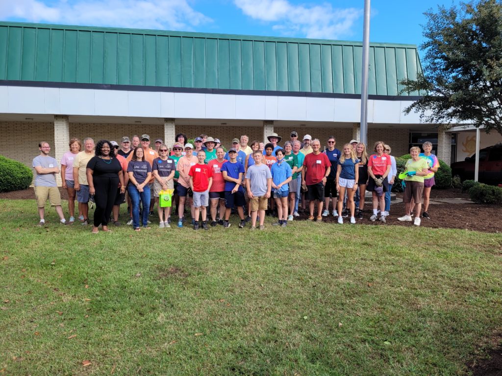 Fifty-five volunteers from St. John’s Lutheran Church participated in the “God’s Work. Our Hands.” project at Isenberg Elementary School on the afternoon of October 10. The work entailed trimming shrubbery & bushes, cleaning out leaves & debris from the mulched areas, re-mulching, trimming trees, cleaning out overgrown flower beds, and pressure washing the sidewalk. Volunteers also made 30 goody bags for teachers and staff. St. John’s would like to thank BJ & Michael Connor for Thrivent Grant monies and T-shirts. Additional pictures are below.