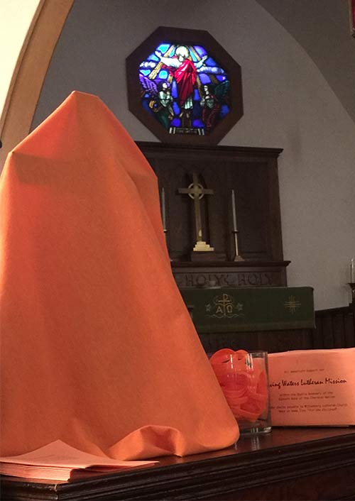 As the discussion grew, St. Mark’s congregation council decided to hang an orange cloth on the outdoor cross they had erected during Holy Week. They invited the congregation to participate after worship on a Sunday, using the litany shared by synod staff. “The orange cloth is a tangible thing that opens opportunities for discussion about intangible grief.”