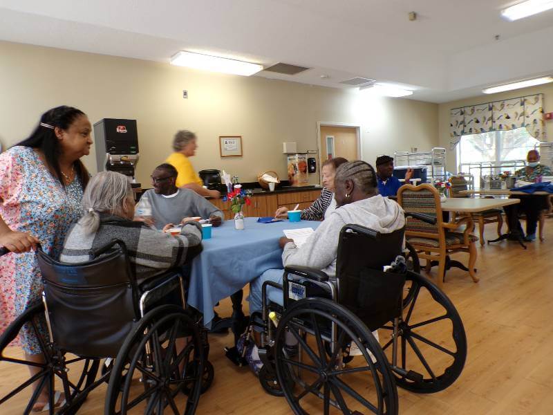 Members of St. Mark’s, Lumberton, visited residents and staff at GlenFlora nursing home in Lumberton to worship, visit, and serve ice cream sundaes to the approximately fifty residents of GlenFlora. GlenFlora has been managed by Lutheran Services Carolinas for about five years.
